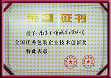 全國優(yōu)秀包裝企業(yè)技術(shù)創(chuàng)新獎